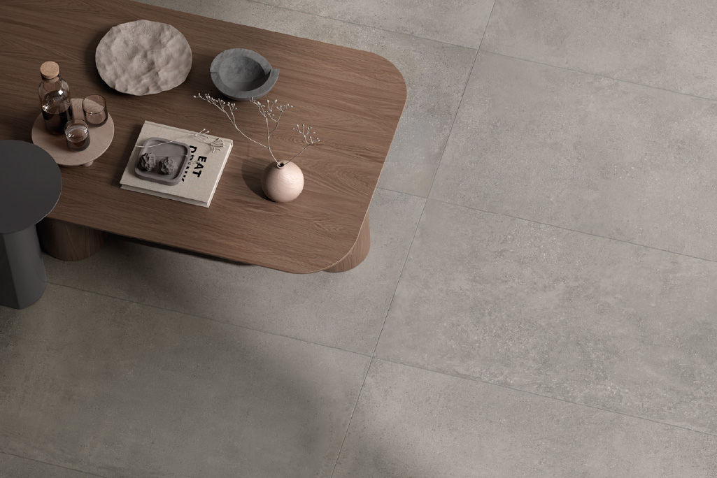 Un effetto pietra minimale che fonde più modelli naturali per conciliare gusti anche molto distanti tra loro. La grana fine del fondo, le inclusioni minerali e le delicate venature creano un movimento vagamente direzionato di grande realismo.